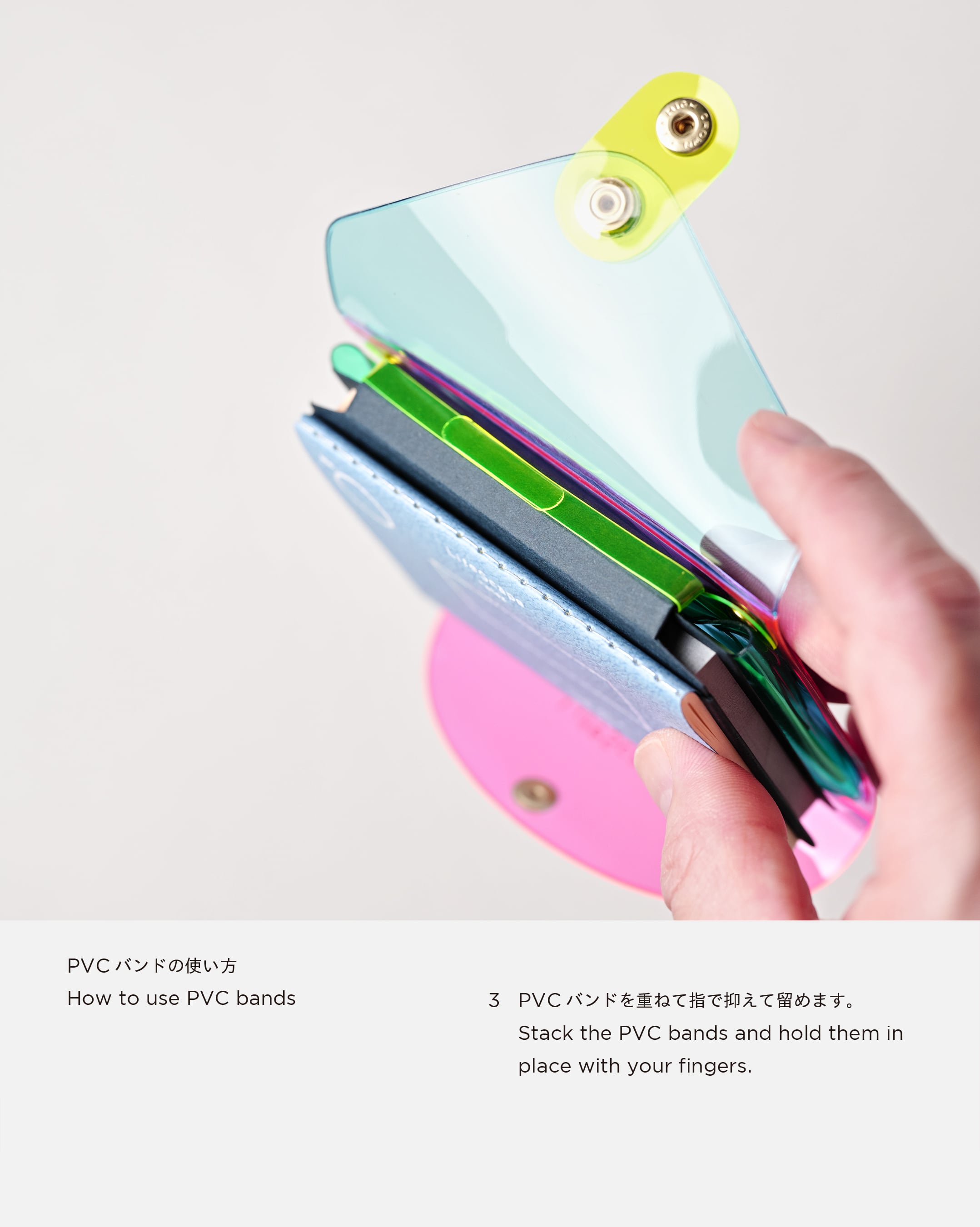 各色のカバーに付箋、延長ホック、PVCバンドは付属しております。