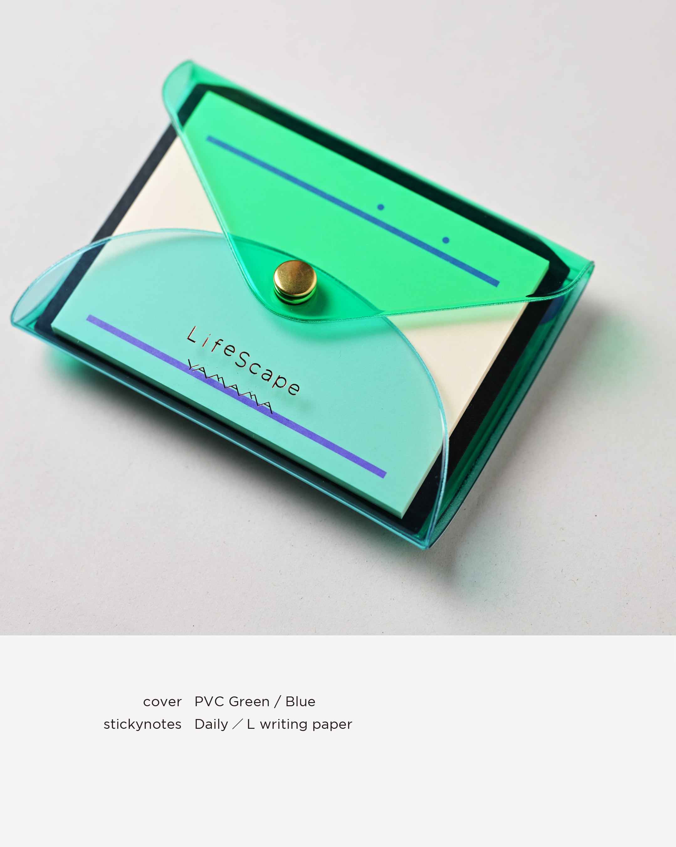 グリーン ふせん紙(紙:フールス紙 罫線:ミントカラーの方眼)+延長ホック+PVCバンド
