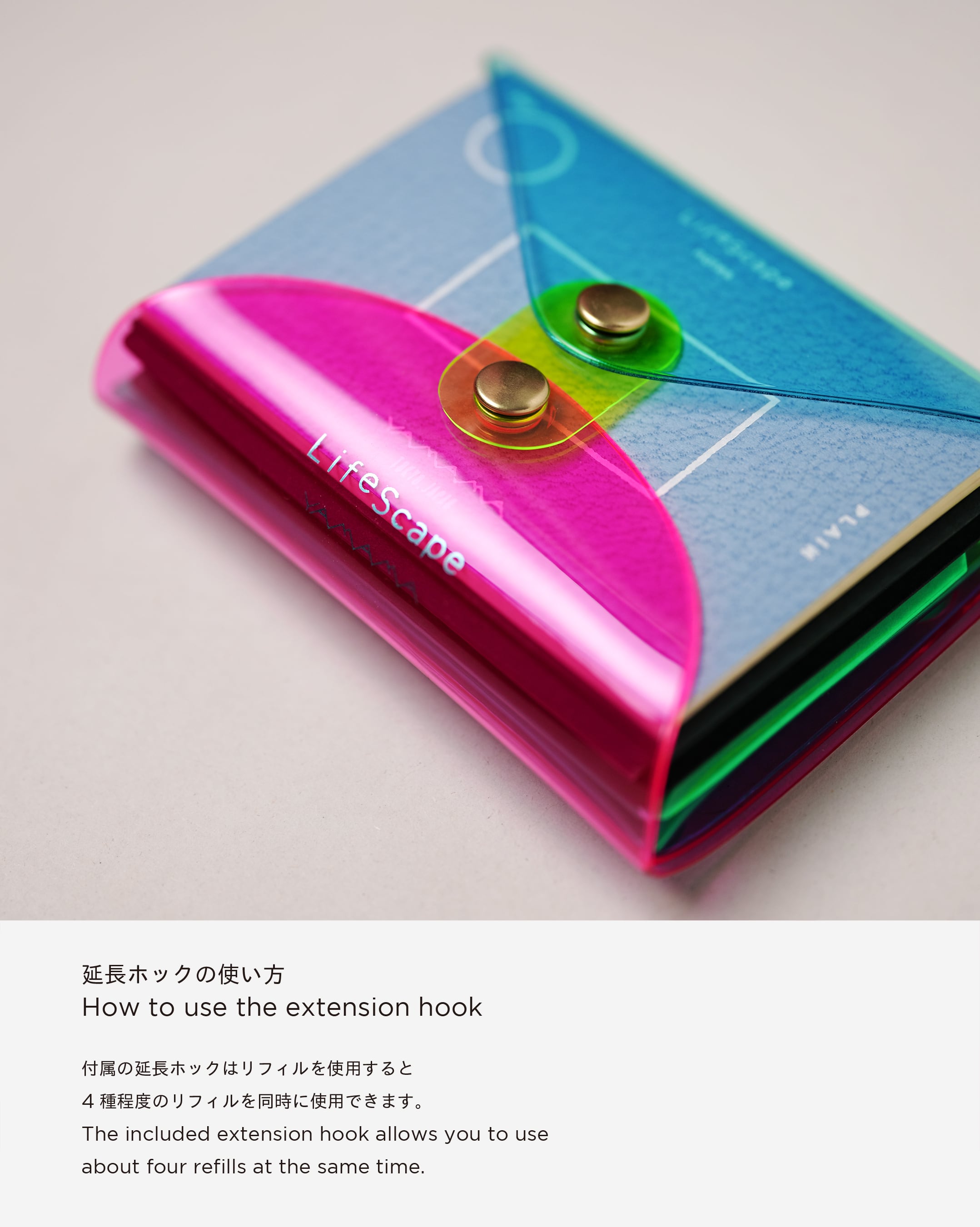 ふせん紙やノート、ポケットなどのリフィルを自由にカスタムできるPVCカバーです。